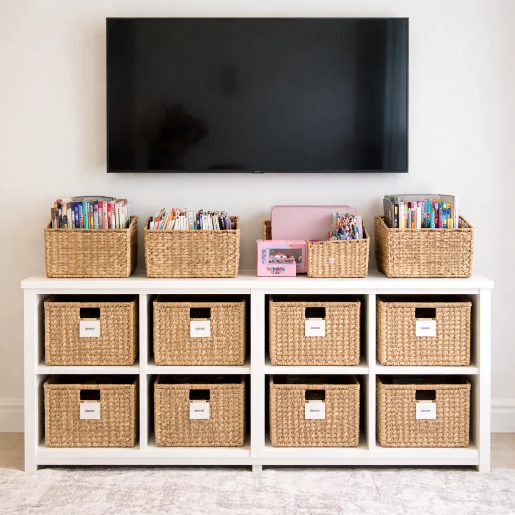 Straighten Up Homes action: We sort, categorize, contain, label, and style — building systems your whole family can follow.